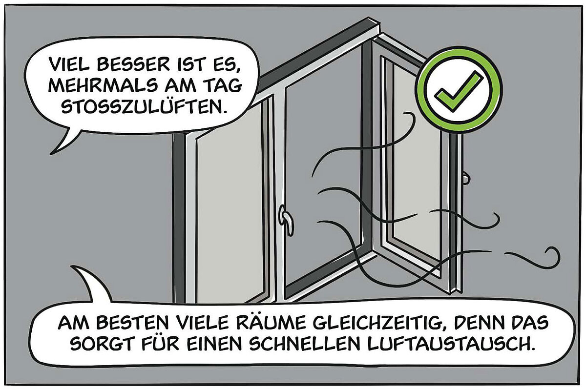 - Beim Lüften sollten die Fenster immer ganz geöffnet werden. Gekippte Fenster bringen nur wenig und kühlen die Wände zu sehr aus.