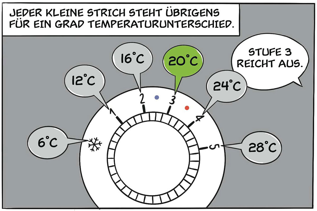 - Lassen Sie ungenutzte Räume nicht auskühlen, sondern heizen Sie auch diese leicht.